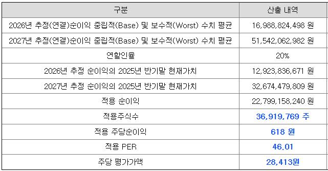 2026년과 2027년의 추정 순이익을 바탕으로 희망 공모가를 산정하였는데, 이에 대한 시장의 신뢰 확보 여부가 중요하다고 하겠습니다.