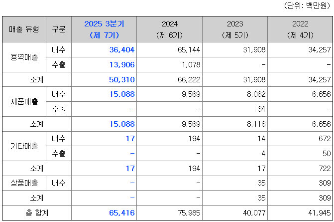 용역 매출은 고객사의 요청에 따라, 전용 반도체를 설계, 개발을 위한 엔지니어링 서비스를 제공하며 발생한 매출입니다. 용역매출 프로젝트에서 개발된 반도체 중 양산 단계에 돌입한 프로젝트에서 발생한 매출로서, 양산 반도체 제품을 위탁생산하고 공급하여 칩 수량과 단가에 따라 발생하는 제품 매출입니다. 기타 매출은 미국 SiFive사의 IP 라이선스를 판매하여 발생하는 수수료 매출입니다.