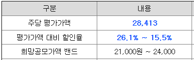 희망 공모가격은 21,000원 ~ 24,000원이고, 삼성증권에서 청약 가능합니다.