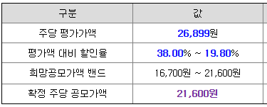 당초 희망 공모가격 상단으로 결정된 것입니다.