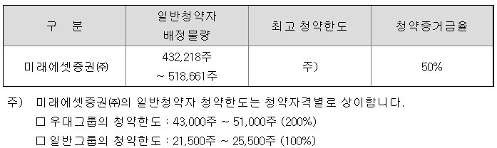 - 청약 가능 증권사 : 미래에셋증권